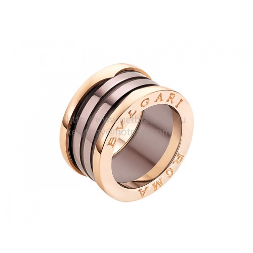 • Anillo Bvlgari B.zero1 ROMA de 4 bandas en oro rosa con cerámica de bronce
