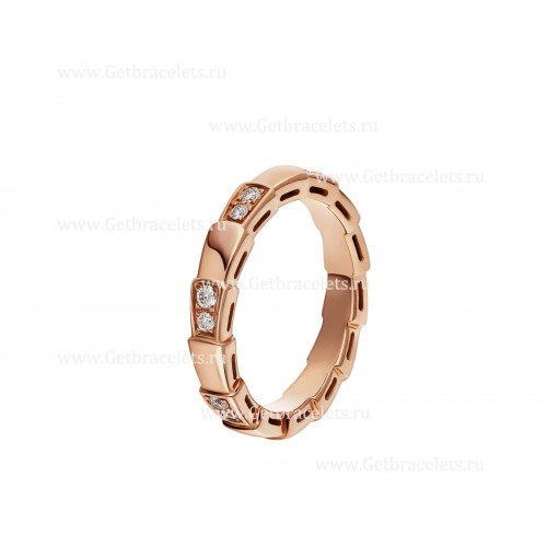 Anillo BVLGARI con forma de víbora Serpenti pequeña en oro rosado de 18 k con semipavé de diamantes