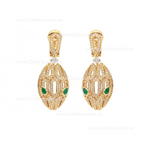 Pendientes Bvlgari Serpenti de oro amarillo de 18 quilates con pavé de diamantes y ojos de malaquita