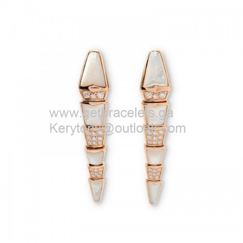 Pendientes Bvlgari Serpenti con diamantes y imitación de nácar en oro rosa