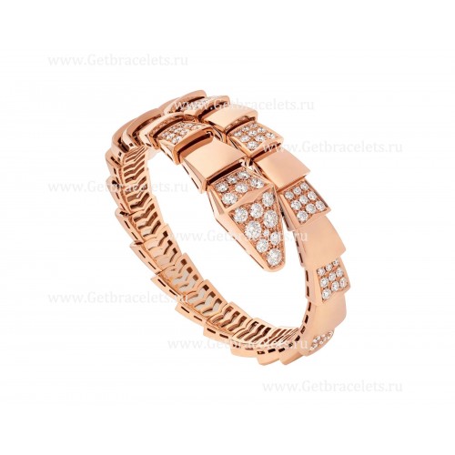 Brazalete de una bobina Bvlgari Serpenti Viper en oro rosa de 18 quilates engastado con semipavé de diamantes