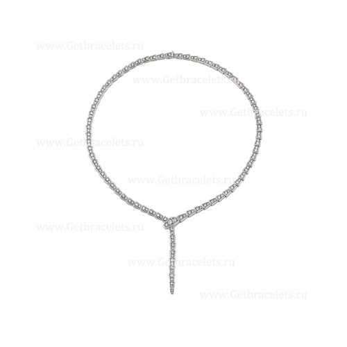 • Collar delgado Bvlgari Serpenti Viper de oro blanco de 18 quilates con pavé de diamantes