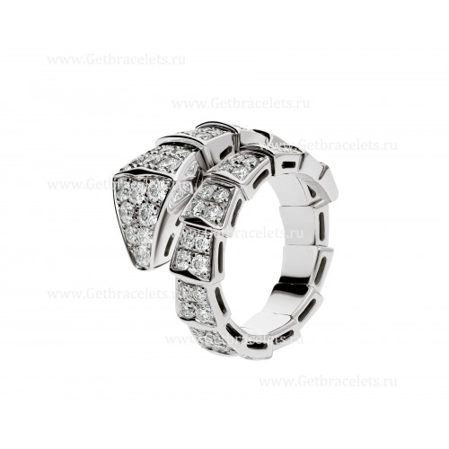 Anillo de una vuelta Bvlgari Serpenti Viper en oro blanco de 18 quilates con pavé de diamantes