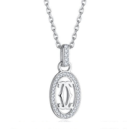 Collar Cartier con doble C y logotipo en oro blanco con diamantes
