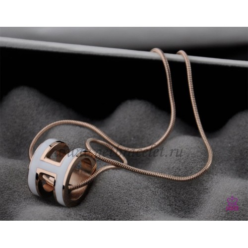 Hermes 3D Pop &#8220;H&#8221; Collar blanco con logo de hueso de serpiente en oro rosa