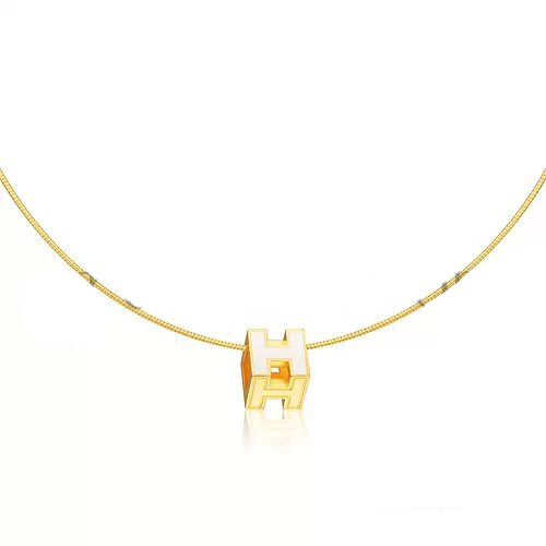 Collar Hermes Cage dH blanco en oro amarillo lacado