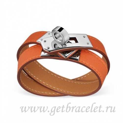 • Hermes Rivale pulsera de doble vuelta naranja con plata