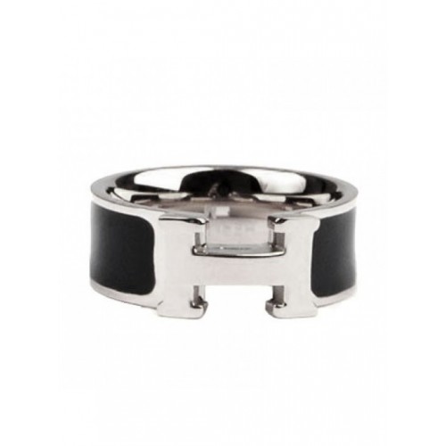 Anillo Clic H con esmalte Hermes en oro blanco de 18 quilates con negro