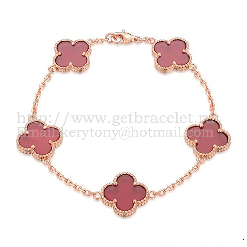 Pulsera Van Cleef Arpels Alhambra 5 Motivos Oro Rosa Con Nácar Cornalina