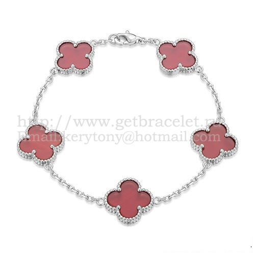 Pulsera Van Cleef Arpels Alhambra 5 Motivos Oro Blanco Con Nácar Cornalina