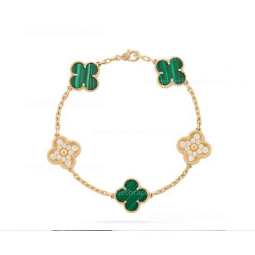 Van Cleef Arpels Pulsera Alhambra 5 motivos Con Diamantes y Malaquita