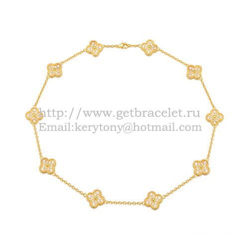 Collar largo Van Cleef Arpels Alhambra en oro amarillo con 10 motivos y pavé de diamantes
