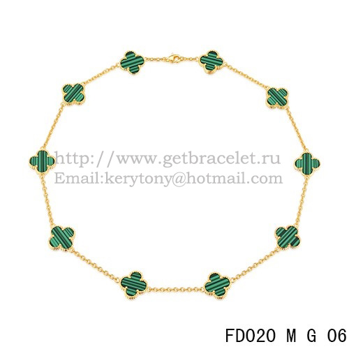 Collar Van Cleef Arpels Alhambra Oro amarillo 10 motivos Malaquita Nácar 45cm