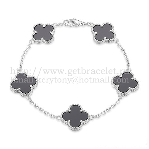 Pulsera Van Cleef Arpels Alhambra 5 Motivos Oro Blanco Con Ágata Negra Nácar