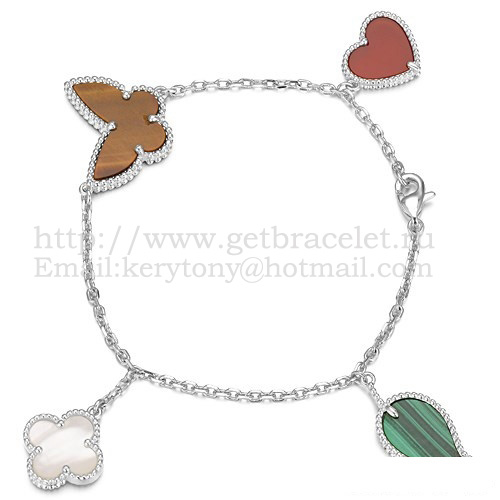 • Van Cleef Arpels Lucky Alhambra 4 Motivos Pulsera Oro Blanco Con Combinación De Piedras 003