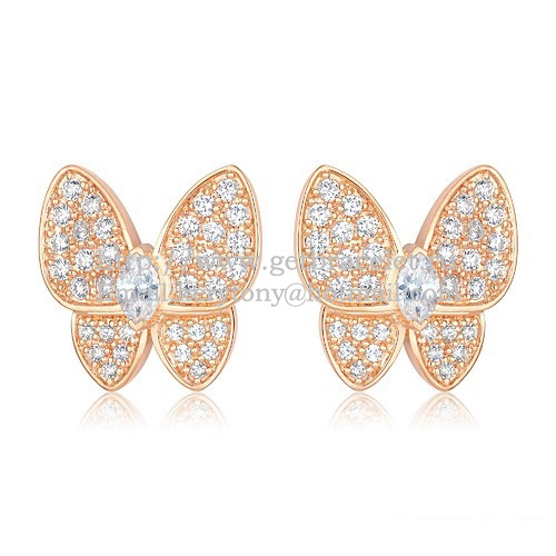 Pendientes Van Cleef Arpels Flying Two Butterflies en oro rosa con pavé de diamantes