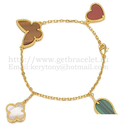 Van Cleef Arpels Lucky Alhambra 4 Motivos Pulsera Oro Amarillo Con Combinación De Piedras 003