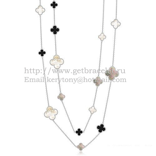 • Collar Van Cleef Arpels Magic Alhambra Oro blanco 16 motivos con ágata negra Nácar gris blanco