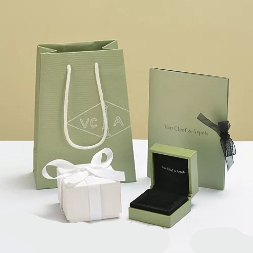 Incluyendo un Van Cleef & Arpels Ring Box, una caja de regalo, una bolsa de compras y Van cleef & tarjeta arpels.