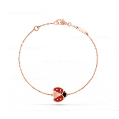 Van Cleef Arpels Lucky Long Pulsera Alas Abiertas Mariquita Oro Rosa Cornalina Ónix