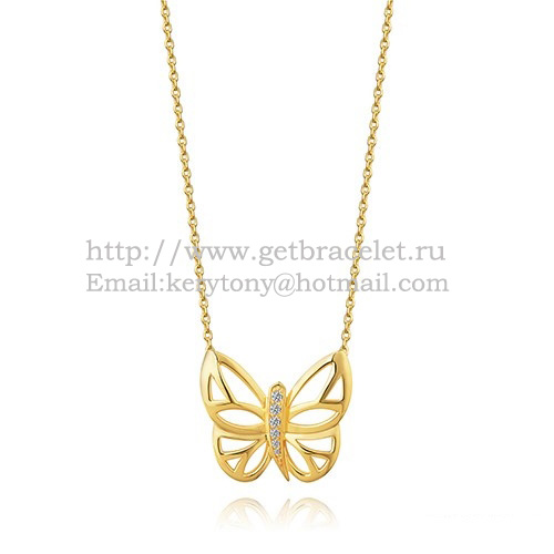 Esta serie de obras interpreta y transforma la mariposa en algo suave, elegante y poético. En este elegante colgante de mariposa, los diamantes redondos tallados con incrustaciones de alas doradas se complementan entre sí.